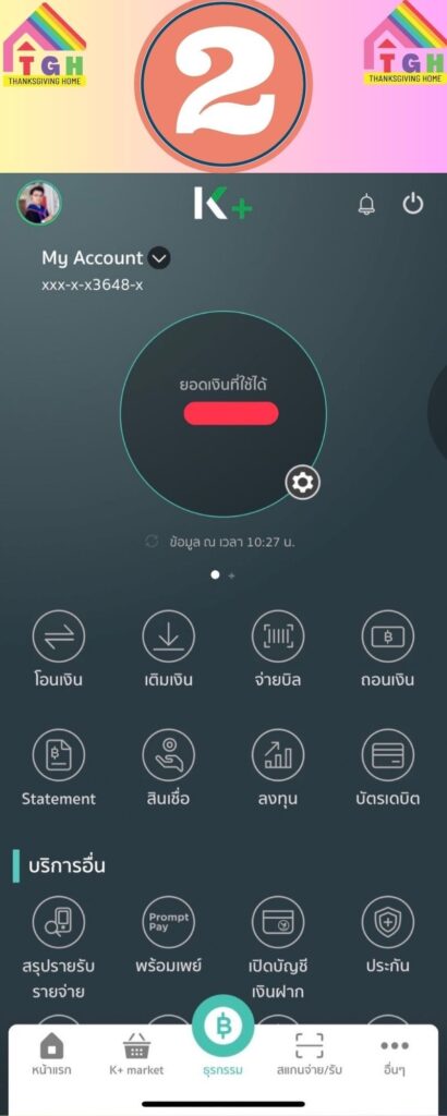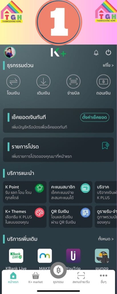 เปิดบัญชีธนาคารกสิกรไทย ใช้ Application K Plusโอนเงินบริจาคมูลนิธิบ้านขอบพระคุณ